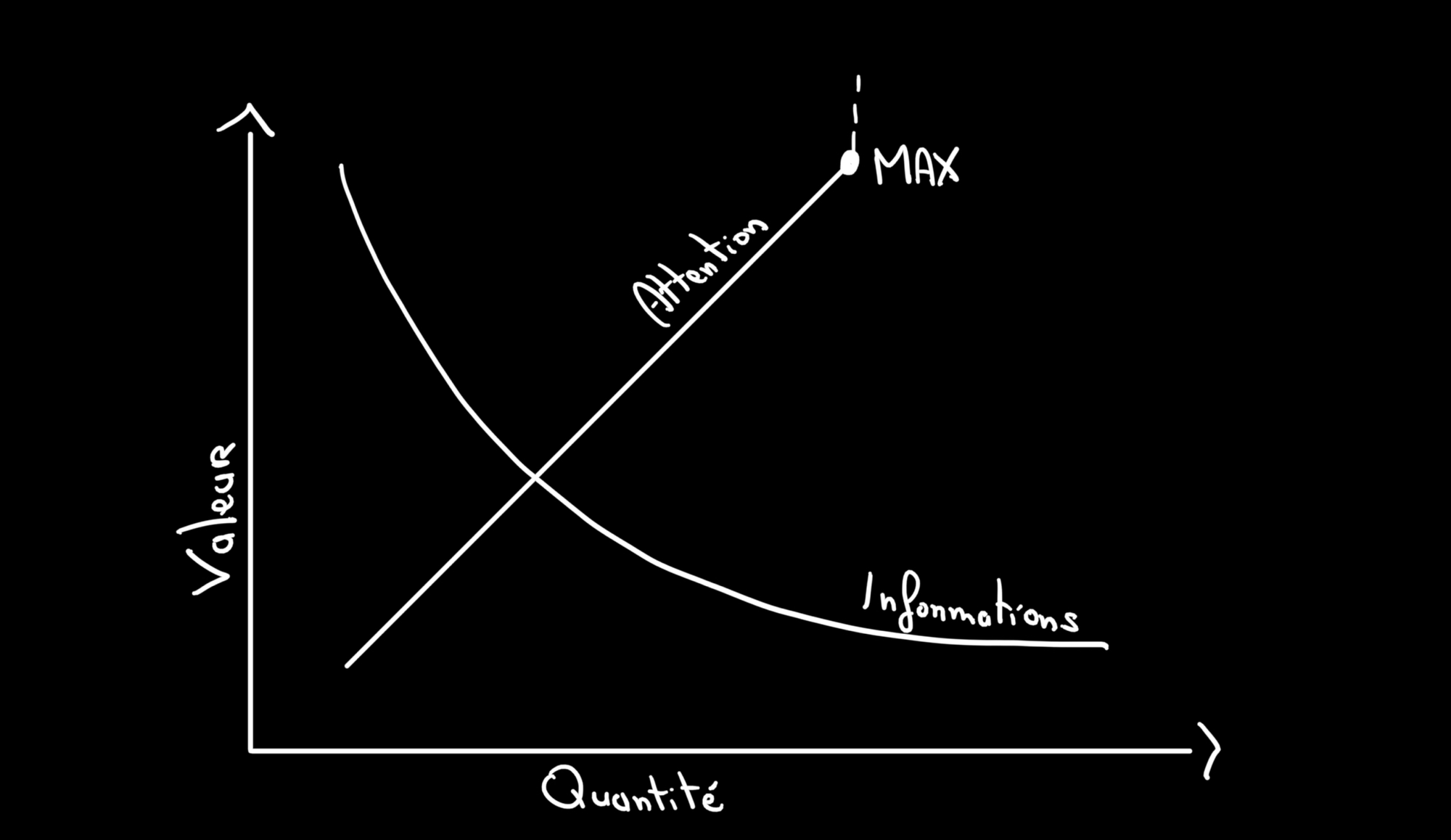 On a donc une demande énorme pour cette attention, et une offre limitée. Tout le monde a 24 heures dans une journée et ne peut pas passer tout son temps devant un téléphone. On est arrivé à un moment où la tension sur le marché de l'attention est devenue extrême. On sursature. Les gens ont des vibrations fantômes de leur téléphone dans leur poche, ils sont complètement addicts aux plateformes et désinformés. Leur cerveau vit pour la dopamine qu'ils obtiennent en ouvrant leur téléphone chaque matin et non plus pour des vrais projets, des vraies choses à mettre au monde.